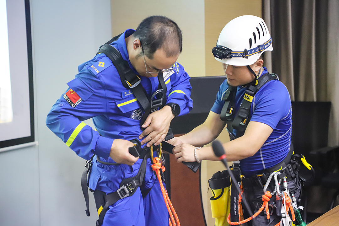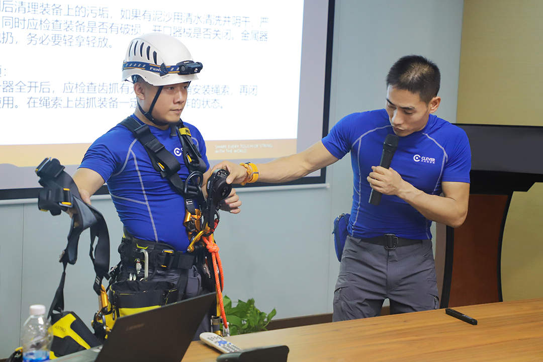 本次活动分为理论知识和现场演示两大板块,“克拉维智能”的教官用图文并茂的方式,结合绳索安全装备现场为队员们讲解了“个人绳索装备使用及保养”并现场演示绳结的制作方法。“省蓝天救援队”的队员们在教官的指导下,熟练掌握各种绳结的制作方法、适用场合和注意事项,进一步提高了队员们的工作效率,让救援工作更加安全科学。