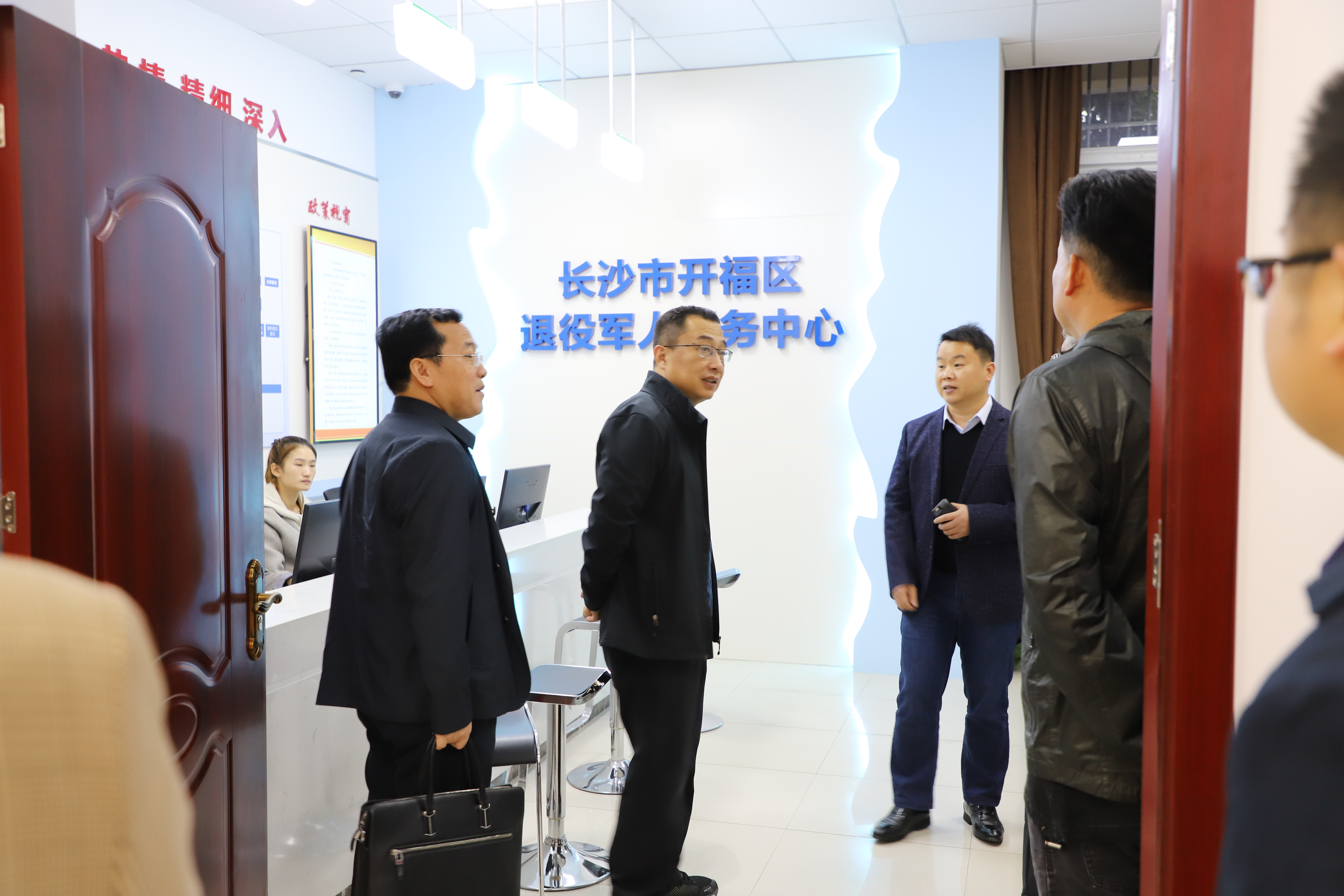 2019年11月20日下午,中央退役军人事务工作领导小组办公室秘书局副局长张进一行到开福区调研退役军人工作。