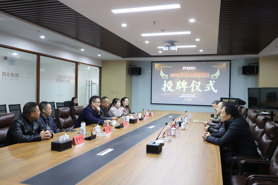2019年12月5日上午,“2019年湖南创新湘商”授牌仪式在西米集团会议室举行,长沙市沅陵商会邓忠闱会长、全文书记代表湖南异地商会联合会、湖南异地商会服务指导中心授予西米集团旗下子公司湖南美好明天教育发展有限公司(以下简称:美好明天)“2019年湖南创新湘商”称号,西米集团粟平董事长、美好明天申辉董事长、李平飞总裁参与授牌仪式。长沙市沅陵商会监事长李逢刚、秘书长张华林,西米集团及美好明天公司高层等十余人参与此次授牌仪式。