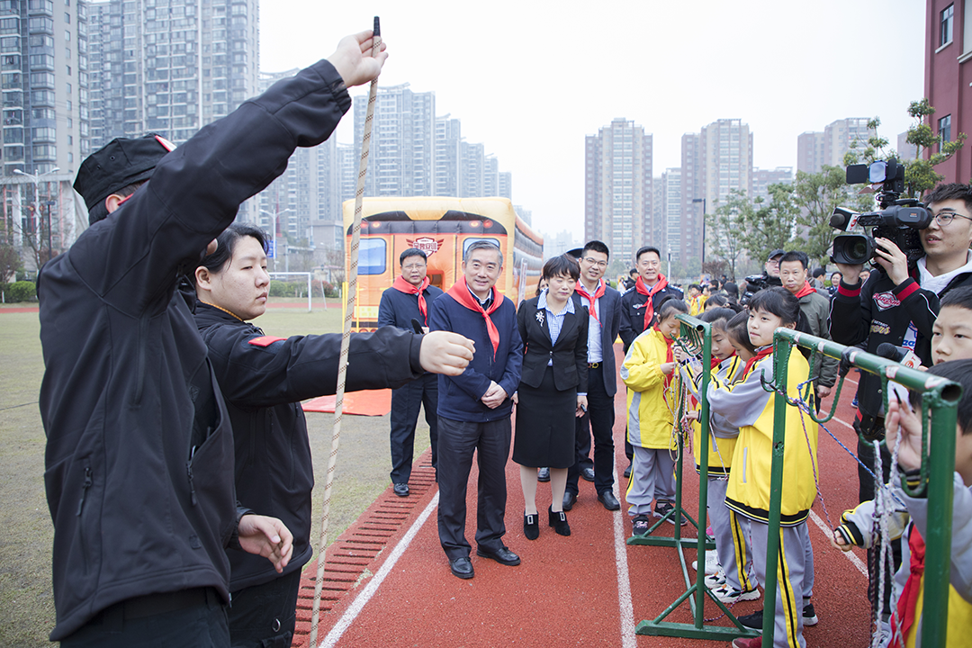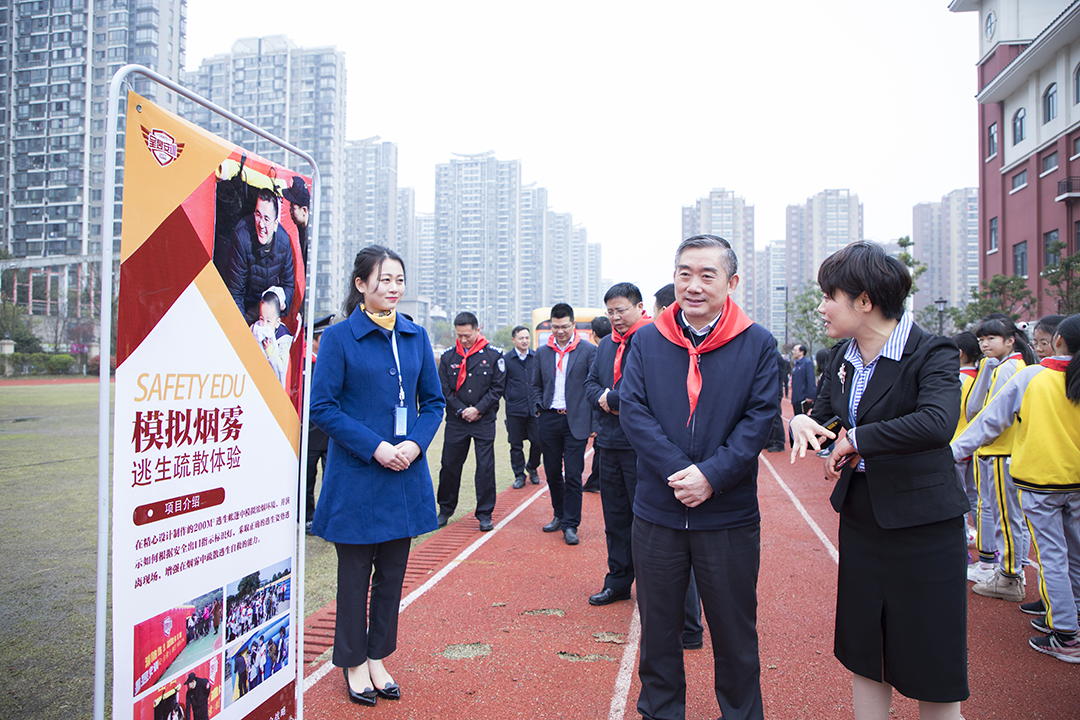 3月25日是第24个“全国中小学生安全教育日”,“关注安全,关爱生命”主题宣传活动在开福区江湾小学启动。活动由湖南省教育厅、省公安厅主办,省教育厅党组书记、厅长、省委教育工委书记蒋昌忠出席启动仪式。活动现场,呈昱安训的教官们与近千名师生一起,进行了烟雾逃生疏散、医疗救护、道路交通安全等模拟演练。